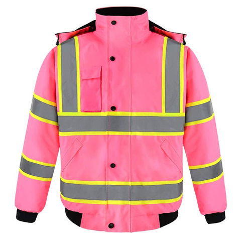 Heavyweight Workwear Waterproof Safety Pink 300D Oxford Fabric with PU Coating Safety Coat Zipper Jacket